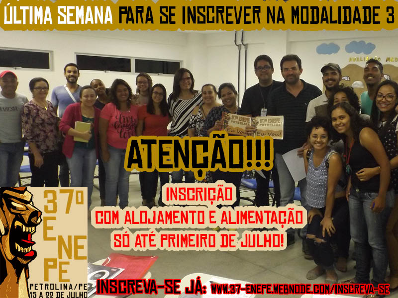 Saudações de luta a todos companheiros e todas companheiras que participarão do 37ºENEPe em Petrolina!