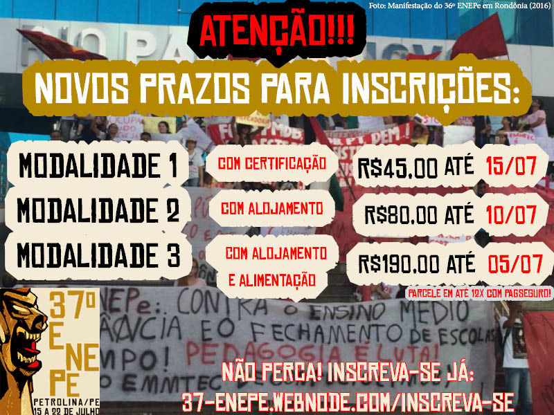 Novos prazos para inscrição no 37º ENEPe!