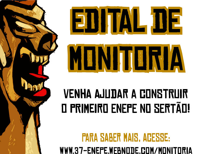 Divulgamos a seguir o EDITAL de seleção para monitoria para o 37º ENEPe.