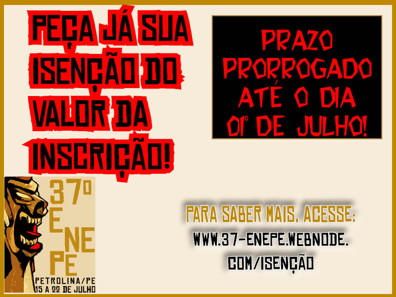 O prazo para pedido de isenção da taxa de inscrição na Modalidade 1 foi adiado para o dia primeiro de Julho.