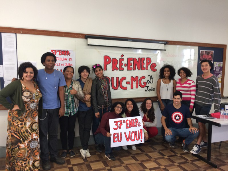 A tarde iniciamos o Pré-ENEPe PUC-MG, e com auxílio da Cartilha de Estudos preparada pela CO do 37º ENEPe, fizemos uma boa discussão sobre a situação política e o papel dos estudantes de pedagogia, repassamos o histórico de lutas da pedagogia bem como aprofundamos a discussão sobre o pedagogo unitário e a relação das DCNs de 2006 com as atuais reformas curriculares.