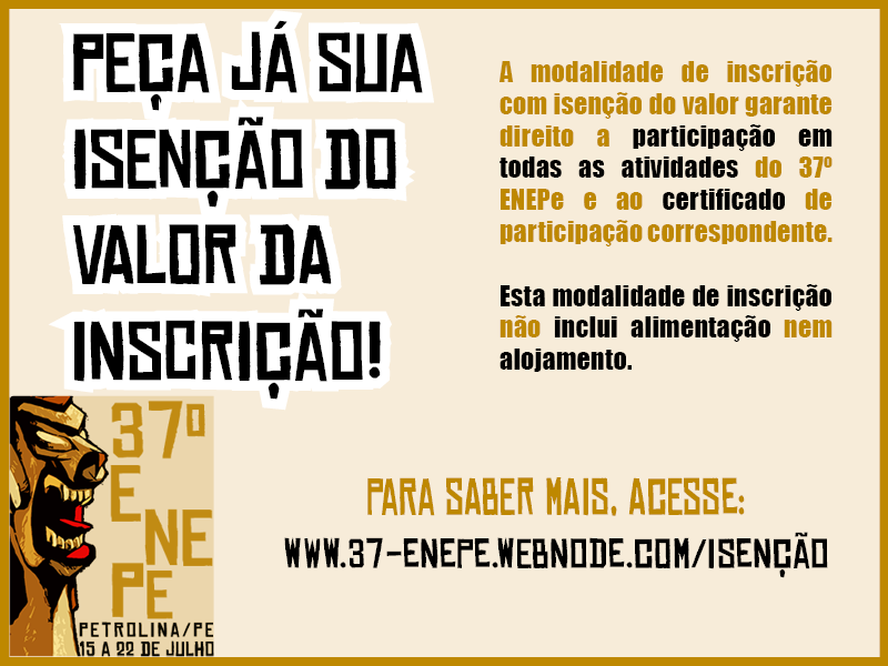 Mais informações podem ser obtidas na página: www.37-enepe.webnode.com/isencao/