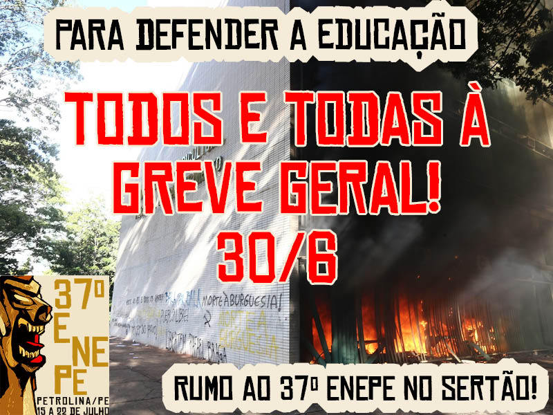 Enviamos nossas combativas saudações a todos e todas, companheiros e companheiras, que tem se organizado para participar do 37º ENEPe. Vamos nos imbuir deste espírito da Greve Geral do dia 28 de Abril e da Marcha a Brasília do dia 24 de Maio, da luta dos camponeses de Pau D'arco e de todo o nosso bravo povo lutador. Vamos levar nossas bandeiras e nossa combatividade para as ruas nesta Greve Geral e fazer dela uma grande preparação para o 37º Encontro Nacional de Estudantes de Pedagogia. Será uma grande agitação contra este governo e seus ataques aos nossos direitos. Pois neste encontro estaremos todos juntos, de norte a sul do país, para barrar estes ataques e derrubar este Estado podre e todas as suas instituições reacionárias!